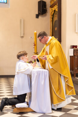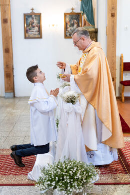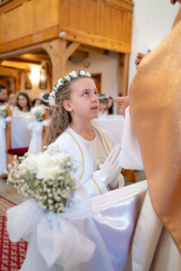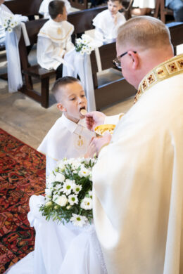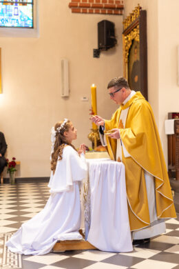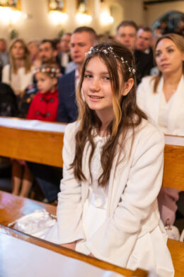 I Komunia to dzień pełen wzruszeń i małych wielkich momentów. W kościele dzieje się dużo – dziecko, rodzice, kapłan, chór, detale.