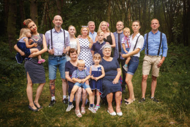 Wszystko zależy od pory roku. Uwielbiam sesje plenerowe przy dużych sesjach rodzinnych. Można wtedy zorganizować piknik, podczas którego wykonam dla Was nieskrępowane i naturalne zdjęcia grupowe i rodzinne. Takie zdjęcia także mogę wykonać w moim studio, gdzie mam wystarczającą ilość miejsca, żeby wykonać nawet zdjęcie 20 osób.
